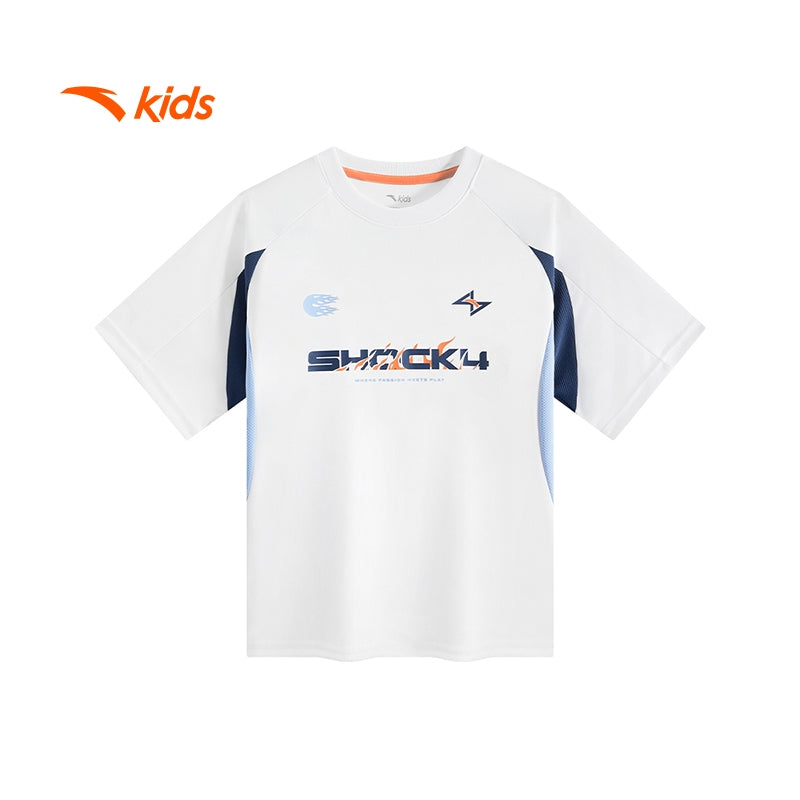 Product Name: anta kids boys basketball short sleeves tee 3525C1103-1 -white (baju bola keranjang kanak lelaki)