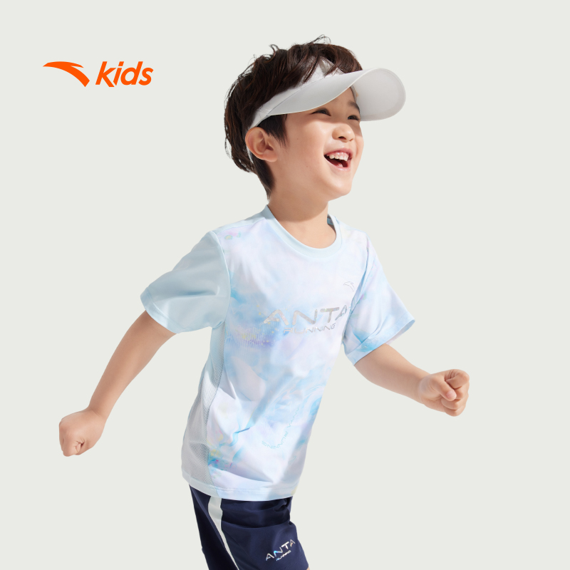 product name: anta kids boys running short sleeves tee void blue