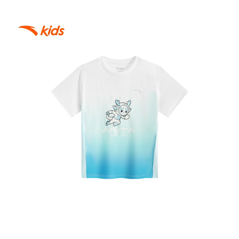 Product Name: anta kids boys running short sleeves tee 3525B9105-1 -white/blue (baju sukan kanak lelaki)