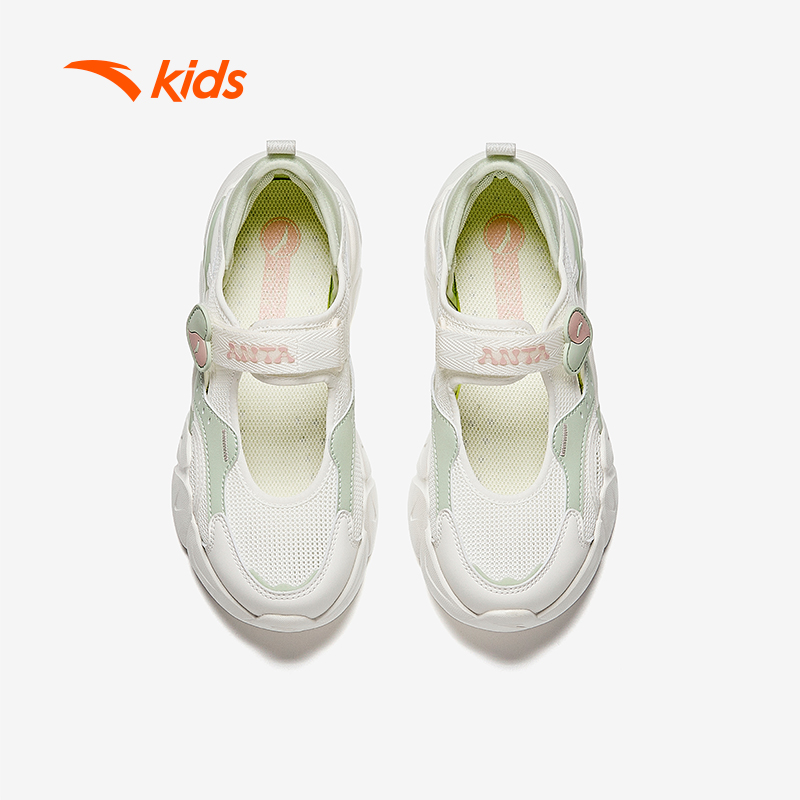 product name: anta kids girls mary jane sandals ivory white/grass green