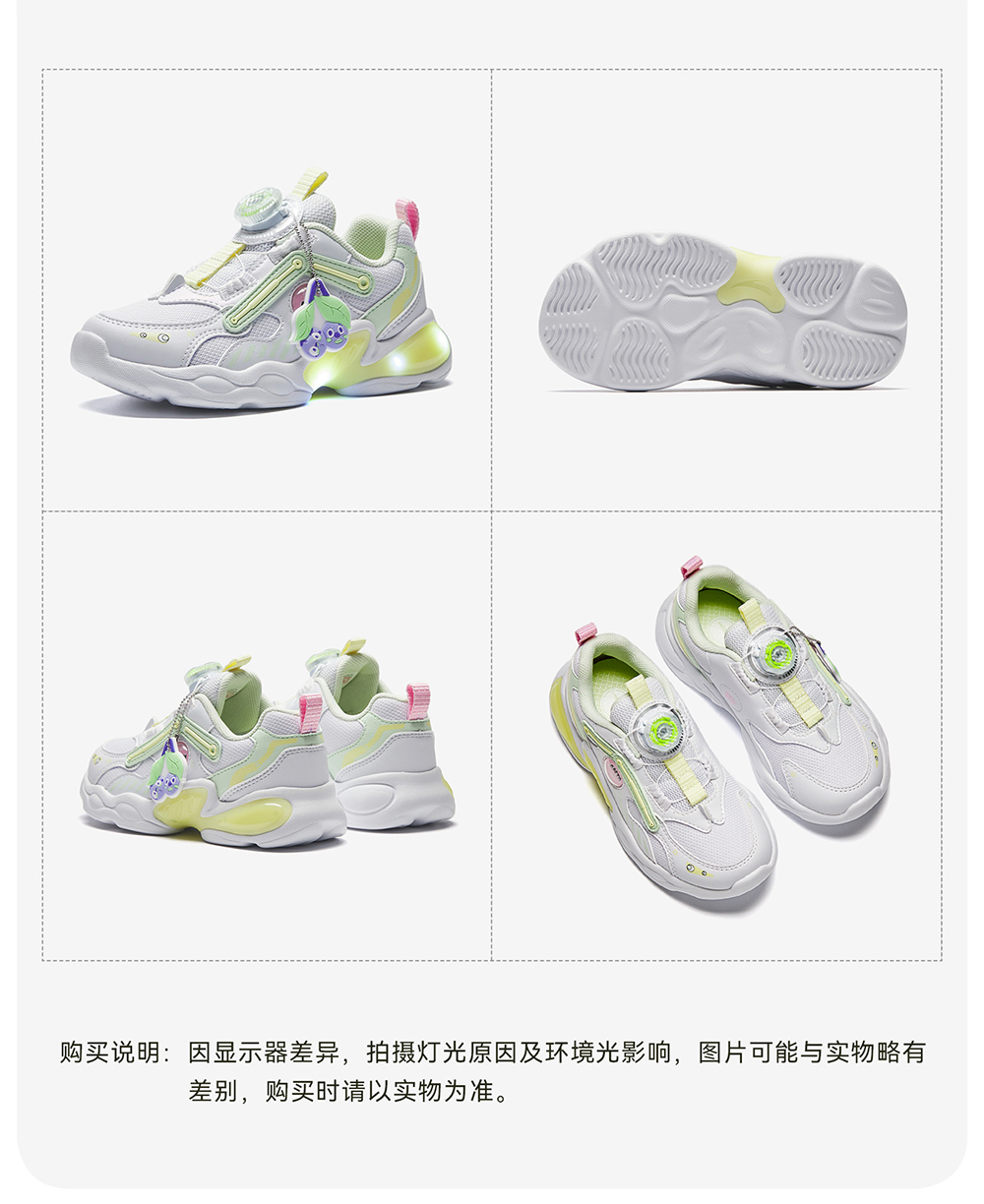 Product Name: anta kids girls Running Shoes A225C9909-2 -white/green/yellow